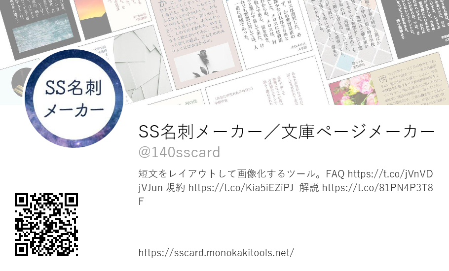 ヘッダー小説メーカー Twitterのヘッダーサイズ(1500×500)で縦書きテキスト入りの画像を生成します。 利用規約