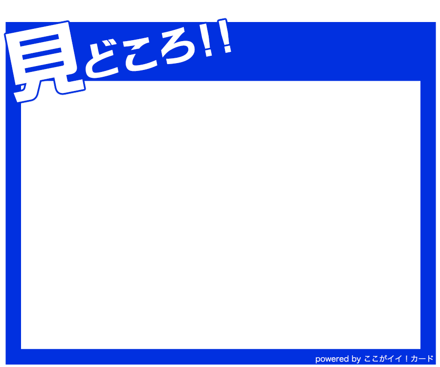 ここがイイ!カードで作成した画像は非商用・個人使用の範囲内で自由にお使い下さい。ただしカード内に引用した画像や文章についてはご自身で責任を持ち、トラブルのないようにお願いします。